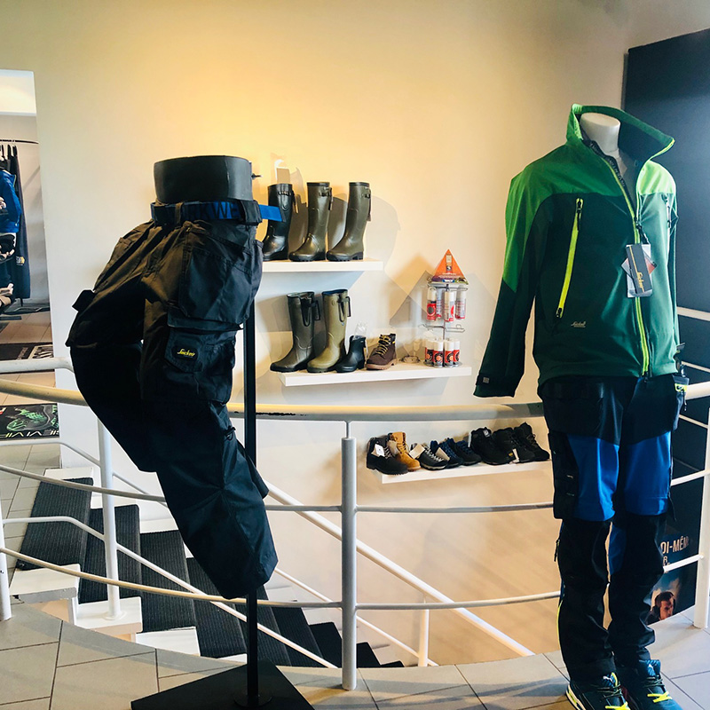 On pourrait également parler des vêtements de pluie, des protections pour les yeux, les oreilles ou le visage, des casques, des articles haute visibilité et s’étendre indéfiniment. Si vous n’avez jamais franchi la porte de cet antre de l’habillement professionnel, une visite s’impose !